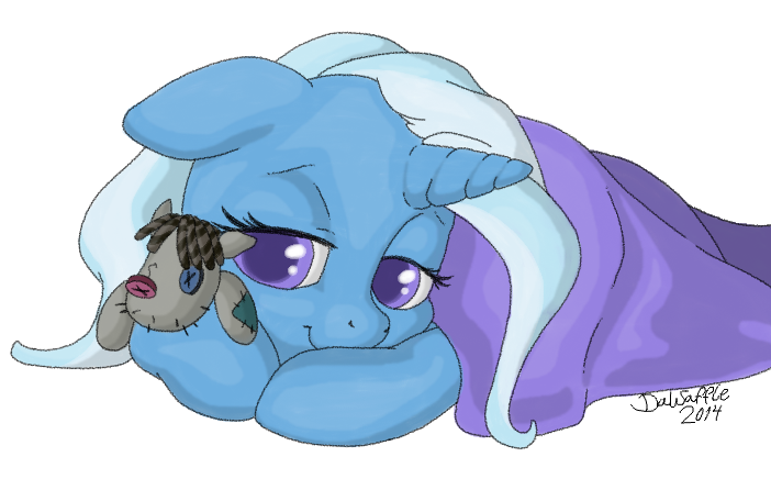 D'aawww! Trixie looks so cute hugging Smarty Pants! Wait, where'd she get Smarty Pants, and how? Hmmmm *ponders* Big Mac must be crying in his bed right now.